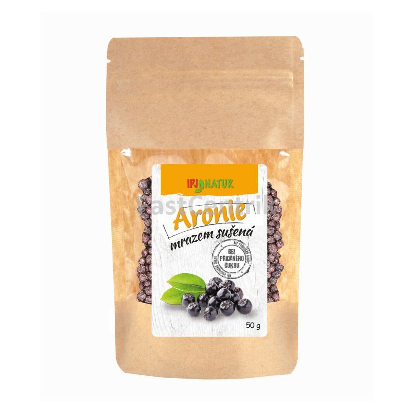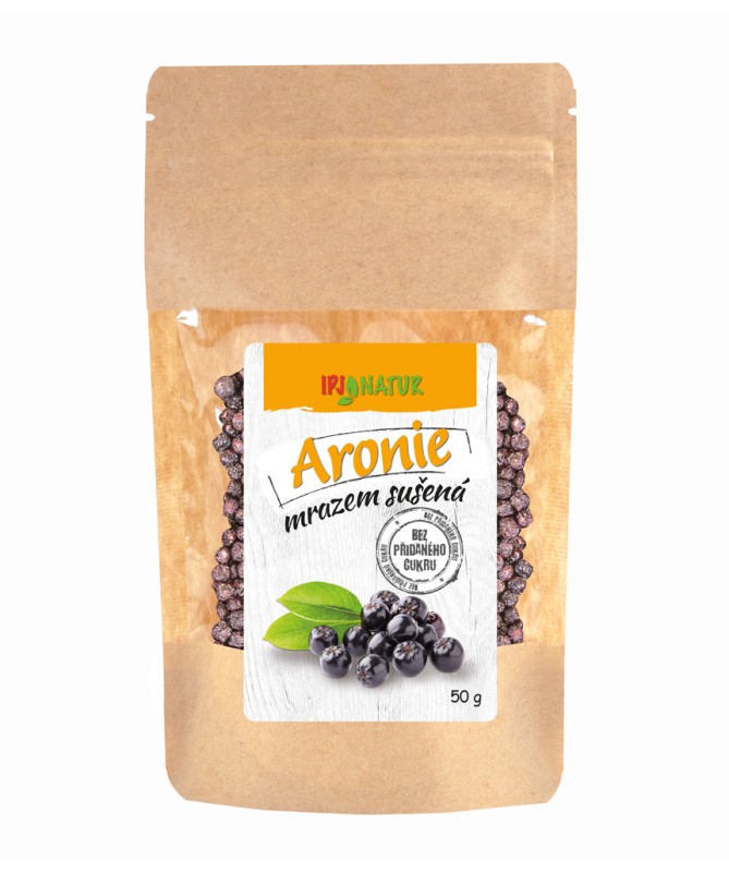Mrazem sušené aronie jsou čistě přírodní křupavé plody aronie bez konzervantů a barviv zakonzervované odpařením vody z ledu. Tento proces se nazývá lyofilizace a odstraňuje z ovoce 98%-99% vody. Ovoce si tak zachovává téměř všechny původní vlastnosti jako čerstvé ovoce, obzvláště zůstávají zachované veškeré vitamíny, minerály a další zdraví prospěšné látky. Lyofilizované ovoce je lehké, snadno a dlouhodobě skladovatelné. Má křupavou strukturu a široké využití od rychlé svačinky přes chutné a zdravé snídaňové směsi a smoothies až po přípravu široké škály pokrmů a dezertů. Aronie (Černý jeřáb) obsahuje velké množství vitamínu C, vitamín E, K, B1, B2, B6 , B9, A a P. Z minerálních látek najdeme v aronii draslík, hořčík, vápník, železo, zinek a jód. Aronie je bohatá na antioxidanty, rutin a bioflavonoidy.
