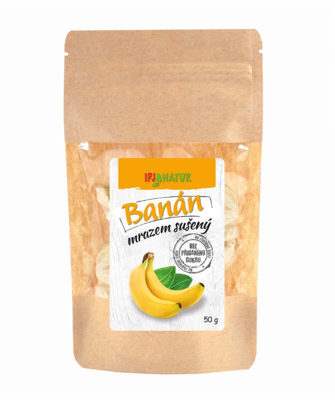 Mrazem sušené banány jsou čistě přírodní křupavá kolečka banánů bez konzervantů a barviv zakonzervovaná odpařením vody z ledu. Tento proces se nazývá lyofilizace a odstraňuje z ovoce 98%-99% vody. Ovoce si tak zachovává téměř všechny původní vlastnosti jako čerstvé ovoce, obzvláště zůstávají zachované veškeré vitamíny, minerály a další zdraví prospěšné látky. Lyofilizované ovoce je lehké, snadno a dlouhodobě skladovatelné. Má křupavou strukturu a široké využití od rychlé svačinky přes chutné a zdravé snídaňové směsi a smoothies až po přípravu široké škály pokrmů a dezertů. Banány jsou bohatým zdrojem přírodních cukrů glukózy, sacharózy a fruktózy, přičemž obsahují řadu užitečných přírodní látek jako je železo, vitamín B12, vitamin B6, vitamin C, D a E, další vitamíny ze skupiny B (niacin, riboflavin, a thiamin), beta karoten, draslík, vápník, měď, zinek, mangan a další složky. Některé zmíněné látky patří mezi antioxidanty.