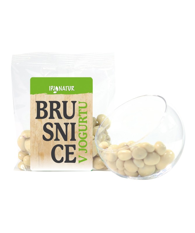 Brusnice v jogurtu jsou sušené plody klikvy velkoplodé obalené ve sladké krémové jogurtové polevě. Jsou výbornou variantou originálního rychlého občerstvení a vhodnou alternativou pro rychlou svačinku sladko-kyselkavé chuti, pro pohoštění, při chuti na něco sladkého nebo ve studené kuchyni k přípravě a dekoraci dezertů.