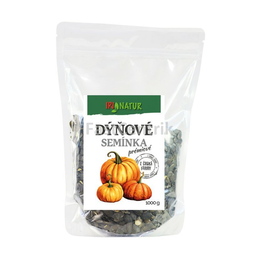 Dýňová prémiová semínka pochází z kvalitní tykve olejné pěstované na jižní Moravě. Značku prémiové kvality mají proto, že jsou po sklizni semínka vyprána vodou, šetrně sušena moderní sušárnou s přívodem tepla z bioplynové stanice a čištěna pouze vzduchem a opticky. Semínka mají jemně oříškovou chuť a obsahují velké množství nenasycených mastných kyselin (omega 3, 6 a 9), vitamínů (A, E, D, C, B1, B2, B3, B6 a B12), kyseliny listové, dále také bílkovin, fytostelů, enzymů a karotenů. Dýňová semínka jsou také nejlepším přirozeným zdrojem zinku. Z minerálů jsou bohaté na vápník, železo, fosfor, mangan, měď, selen a draslík.