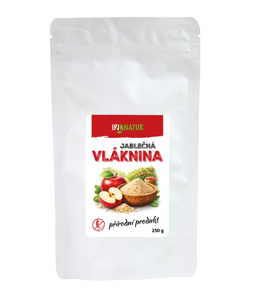 Jablečná vláknina je přirozeně bezlepkový sypký prášek vyrobený z lisovaných, sušených a rozemletých jablek. Jedná se o rozpustnou vlákninu, která je kvalitním doplňkem zdravé stravy a výživy. Neobsahuje žádné konzervanty, aromata, konzervační látky, přidaný cukr, sladidla, barviva a jiná aditiva. Působí blahodárně na střevní mikroflóru a má praktické, rychlé a široké využití.
